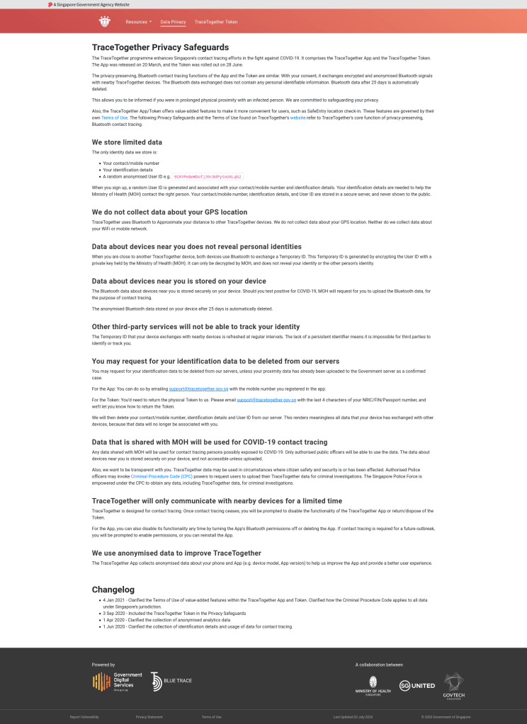 When TT was first released, the privacy safeguards were clearly stated as shown below. It is a screenshot of that the TT FAQ which was taken at 3:44pm on 4th January 2021.